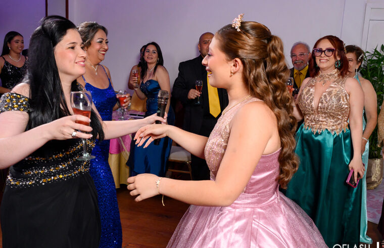 El punto más alto de la velada llegó cuando la cumpleañera que lleva el baile en las venas, se apoderó de la pista junto a sus amigas en una presentación que dejó a todos los invitados siguiendo cada paso, transformando el salón en un escenario donde el talento fue el verdadero protagonista.